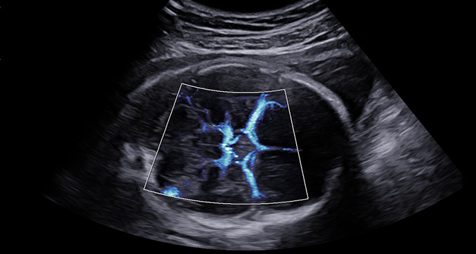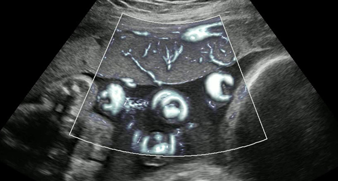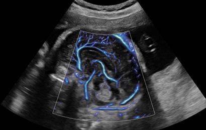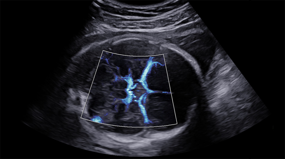 MV-Flow bietet Ihnen eine Alternative zum Powerdoppler zur Visualisierung von langsamen Flüssen. Hohe Bildraten und fortschrittliche Filtertechnologien ermöglichen eine detaillierte Ansicht des Blutflusses in Relation zum umgebenden Gewebe oder der Pathologie, in einer verbesserten räumlichen und zeitlichen Auflösung.