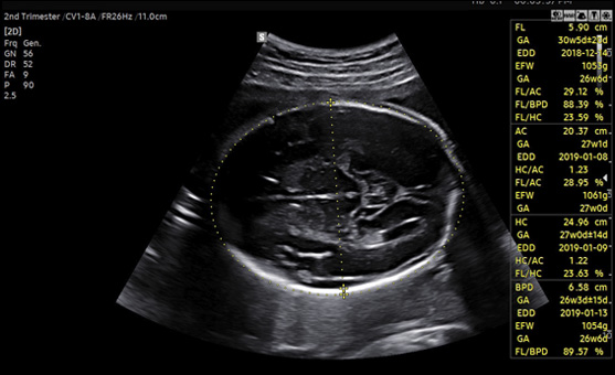 5D CNS+ bietet Ihnen sechs Messungen aus drei unterschiedlichen Durchschnitten des fetalen Gehirns, die ansonsten durch drei 2D-Bilder geschallt und dargestellt würden. Dies fördert die Reproduzierbarkeit Ihrer Messungen und optimiert Ihren Workflow. 5D CNS+™ umfasst, gemäß ISUOG-Leitlinien, axiale, sagittale und koronare Ansichten in neun Ebenen zur Beurteilung des fetalen Gehirns.