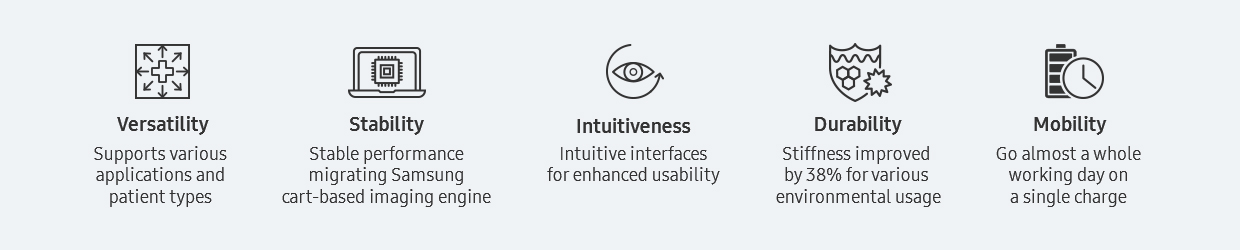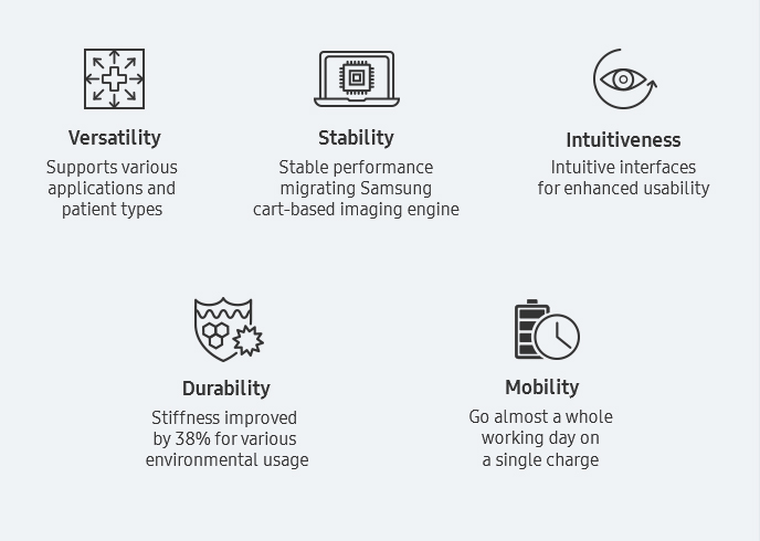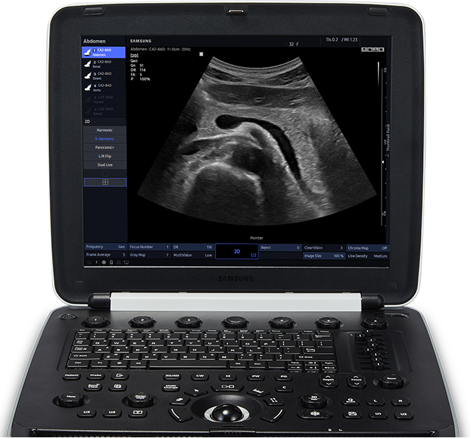 Exceptional image clarity and penetration is adapted from Samsung's high-end imaging platform to produce clear, uniform, high resolution 2D and color images. The HM70 EVO delivers sophisticated imaging technologies to empower ultrasound professionals with diagnostic confidence wherever needed.