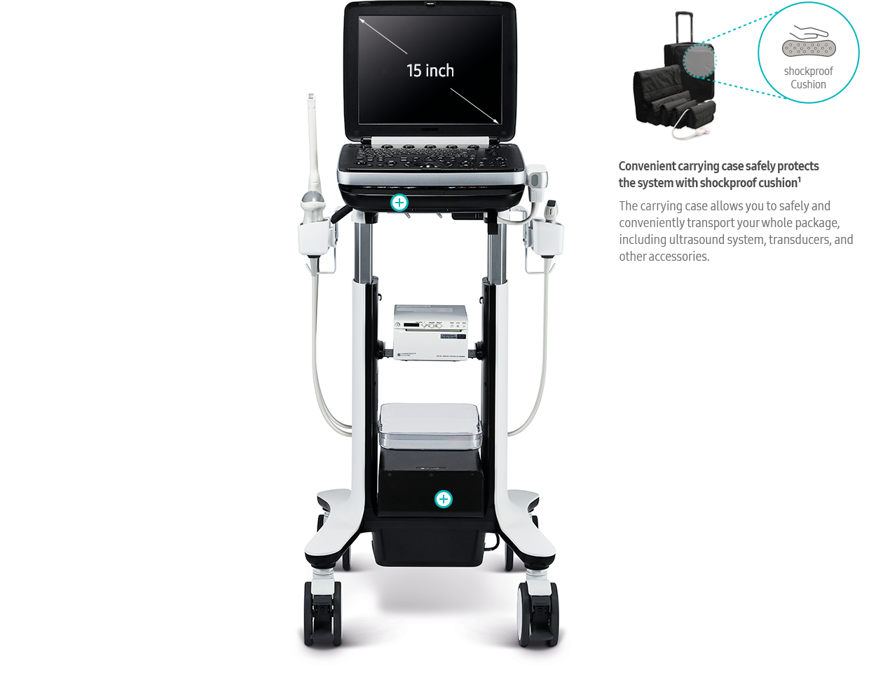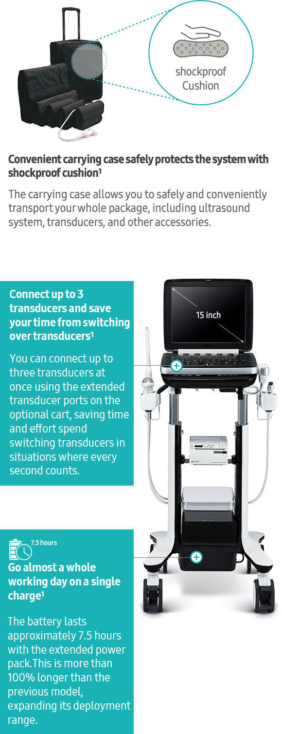 The carrying case allows you to safely and conveniently transport your whole package, including ultrasound system, transducers, and other accessories.