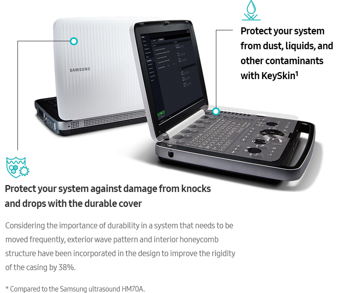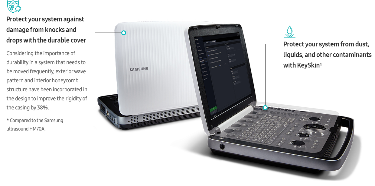 The HM70 EVO ultrasound system is a high-performance hand-carried ultrasound system, evolved to support a diverse range of applications and patients. The system has streamlined workflow, durability, and high resolution imaging that can be used in a variety of clinical situations. Samsung has harmonized the key aspects of the HCU to meet today's changing needs and provide healthcare professionals the confidence they need in their work environment.