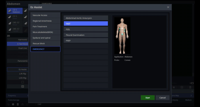 EzAssist provides the anatomical information of the human body at the screen to guide easy ultrasound scanning for untrained people.