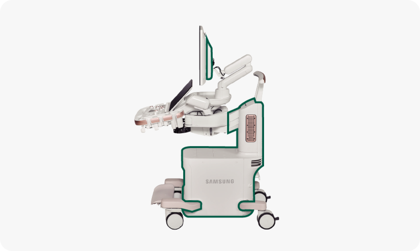 삼성은 의료진을 위해 많은 고민을 기울여 필요한 E-LockTM, 넓은 무릎 공간, 조절 가능 제어 패널 등 편리하고 효율적으로 초음파를 사용할 수 있도록 제작했습니다.